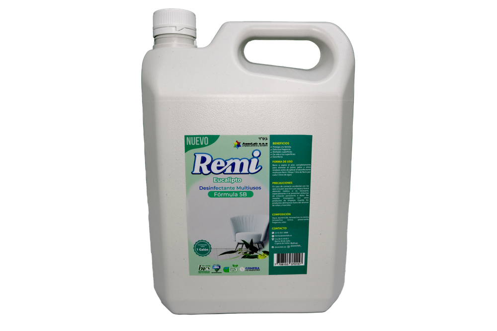 REMI Eucalipto combina el poder de la limpieza profunda con el aroma revitalizante del eucalipto, creando una sensación de frescura y bienestar en cada espacio. Ideal para mantener pisos, baños, cocinas y superficies impecables, este limpiador no solo desinfecta, sino que también purifica el ambiente y deja un aroma natural y duradero.